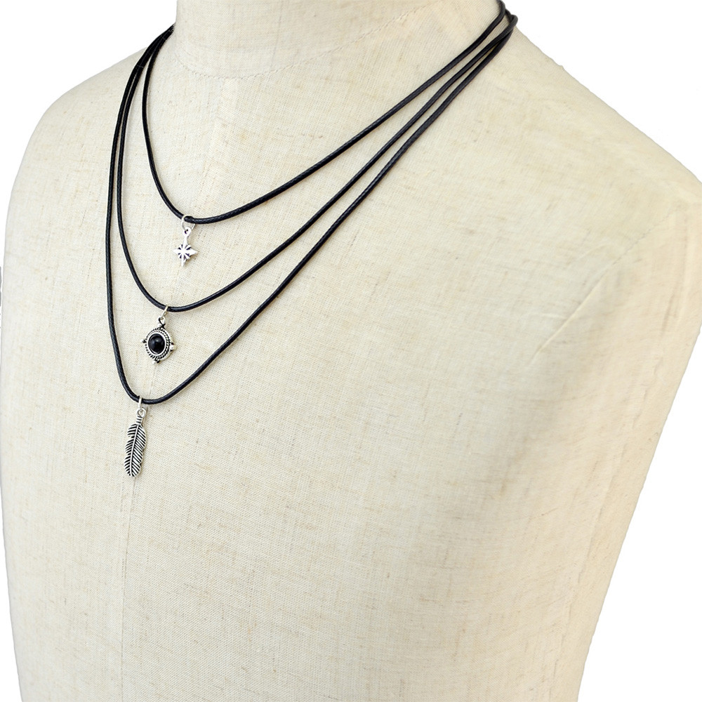 Product: 3pcs/set Black Leather Chain Leaf Bead Pendant Choker Necklace Jewelry for women