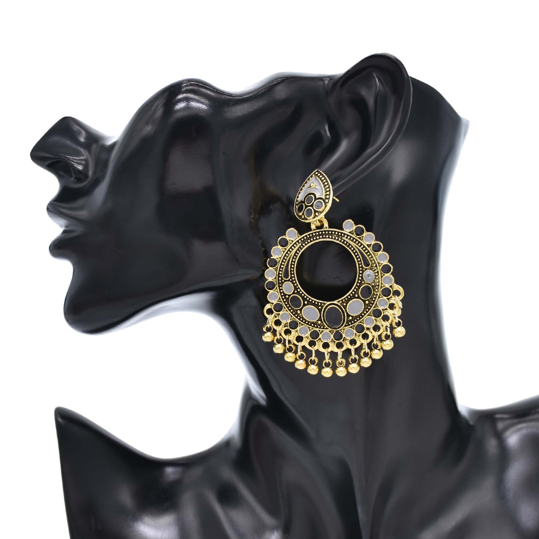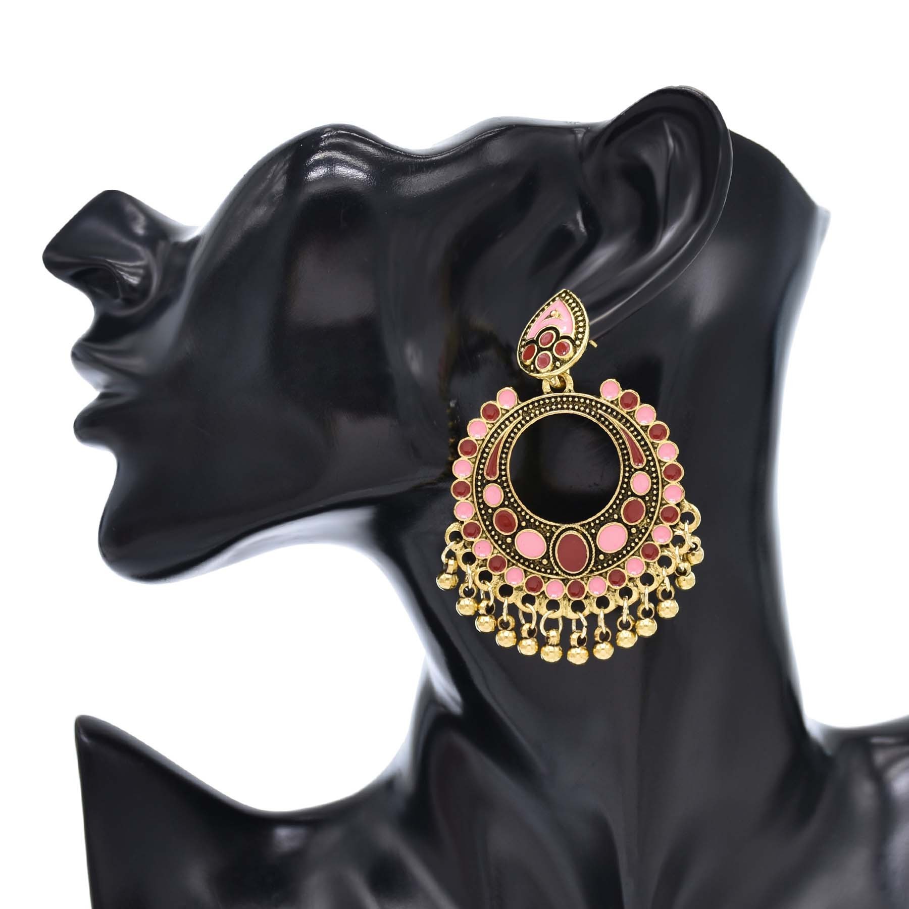 Product: Retro Gold Colorful Drip Oil Bell Tassel Round Indian Earrings for Women